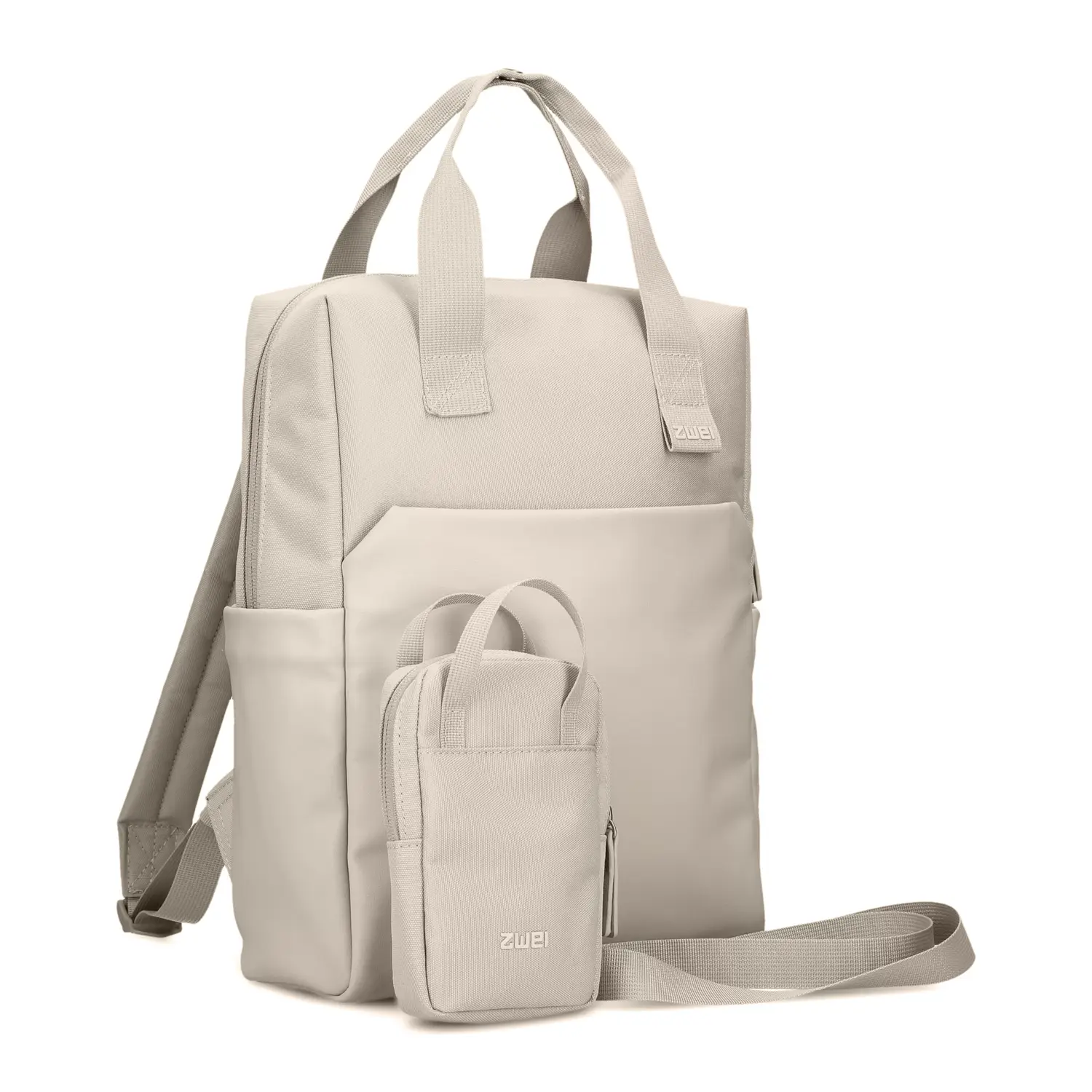 Batoh má zapínání na zip. Uvnitř batohu je kapsa na notebook o rozměrech max. 30 x 21 cm (velikost displeje cca 13"). Uvnitř batohu jsou dále dvě otevřené kapsy a kapsa na zip. K batohu je samostatná etue o velikosti 10 x 16 cm se zapínáním na zip. Etue lze použít např. jako pouzdro na mobil. Etui lze nosit uvnitř batohu nebo ji lze zacvaknout do jednoho z poutek na ramenním popruhu, příp. nosit samostatně. U batohu je také dlouhá šňůra na klíče. Batoh je perfektní volbou pro nošení do města - má ideální velikost, není příliš široký a dobře sedí na zádech. Novinka v kolekci ZWEI!