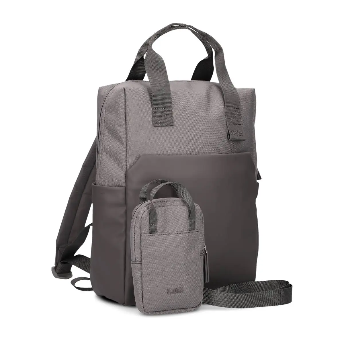 Batoh má zapínání na zip. Uvnitř batohu je kapsa na notebook o rozměrech max. 30 x 21 cm (velikost displeje cca 13"). Uvnitř batohu jsou dále dvě otevřené kapsy a kapsa na zip. K batohu je samostatná etue o velikosti 10 x 16 cm se zapínáním na zip. Etue lze použít např. jako pouzdro na mobil. Etui lze nosit uvnitř batohu nebo ji lze zacvaknout do jednoho z poutek na ramenním popruhu, příp. nosit samostatně. U batohu je také dlouhá šňůra na klíče. Batoh je perfektní volbou pro nošení do města - má ideální velikost, není příliš široký a dobře sedí na zádech. Novinka v kolekci ZWEI!