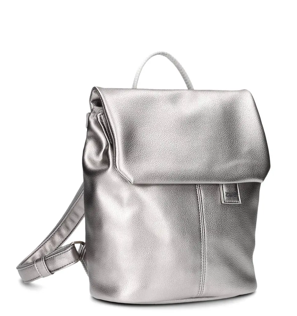 Hezký dámský batůžek má jedno krátké ucho do ruky a dva nastavitelné popruhy na záda. Popruhy jsou vyrobené z pevného polyuretanu, který je pro větší pevnost ještě sešitý s textilním popruhem. Batůžek má na zádech kapsu na zip. Horní část batůžku je překlopená dopředu a zapíná se na magnety skryté pod materiálem. Batoh má zapínání na zip.