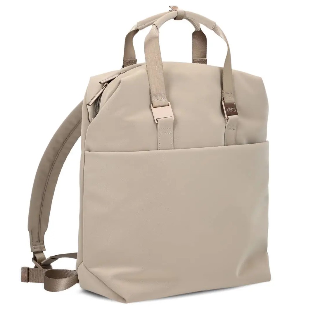 Moderní dámský batoh, který kombinuje minimalistický design s maximální funkčností. Tento stylový batoh z měkké a hladké syntetické kůže nabízí nejen velkorysý objem 10 litrů, ale také promyšlené detaily, jako je např. polstrovaná kapsa na 14" notebook. Materiál batohu je vycpaný, působí tak dojem "péřové bundy". Batoh má dvě krátká ucha do ruky, která se dají spojit drukem, a dva nastavitelné a vyměkčené popruhy na záda. Batoh má vpředu i vzadu velké kapsy na zip. Batoh má zapínání na zip.