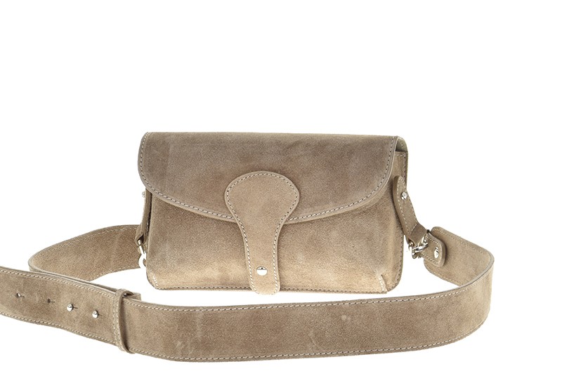 Kožená kabelka je vyrobena z kvalitní italské kůže. Kabelka má pevný tvar. Kabelka má dlouhý, široký, nastavitelný a odnímatelný popruh, takže ji lze nosit v ruce jako psaníčko nebo šikmo přes rameno jako crossbody. Kabelka má klopnu se zapínáním na magnet. Pod klopnou je zapínání na zip. Kovové komponenty mají zlatou barvu.