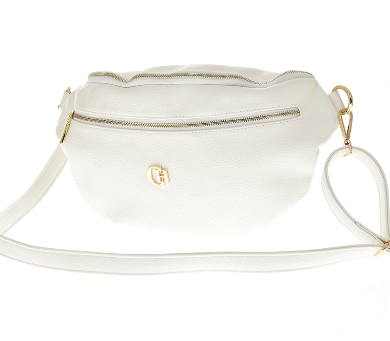 Kabelka má dlouhý, nastavitelný popruh a lze ji tak nosit šikmo přes rameno jako crossbody nebo okolo pasu jako ledvinku. Kabelka má na přední i na zadní straně kapsy na zip. Kabelka má zapínání na zip. Uvnitř kabelky je kapsa na zip a na řetízku zrcátko ve tvaru srdce. Kabelka je velmi lehká.