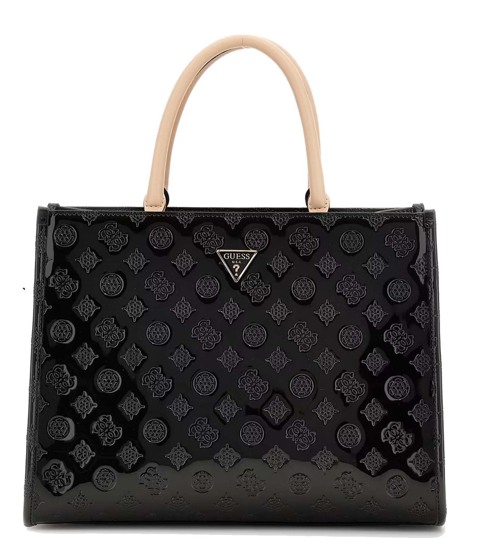 Nádherná kabelka má dvě ucha do ruky a přídavný, nastavitelný a odnímatelný popruh přes rameno. Na zadní straně je kapsa na zip. Kabelka má tři komory. Přední a zadní komora mají zapínání na magnet, prostřední komora má zapínání na zip. Uvnitř kabelky je kapsa na zip a dvě otevřené kapsičky. Kovové komponenty mají zlatou barvu. U kabelky je ochranný pytlík s logem Guess.