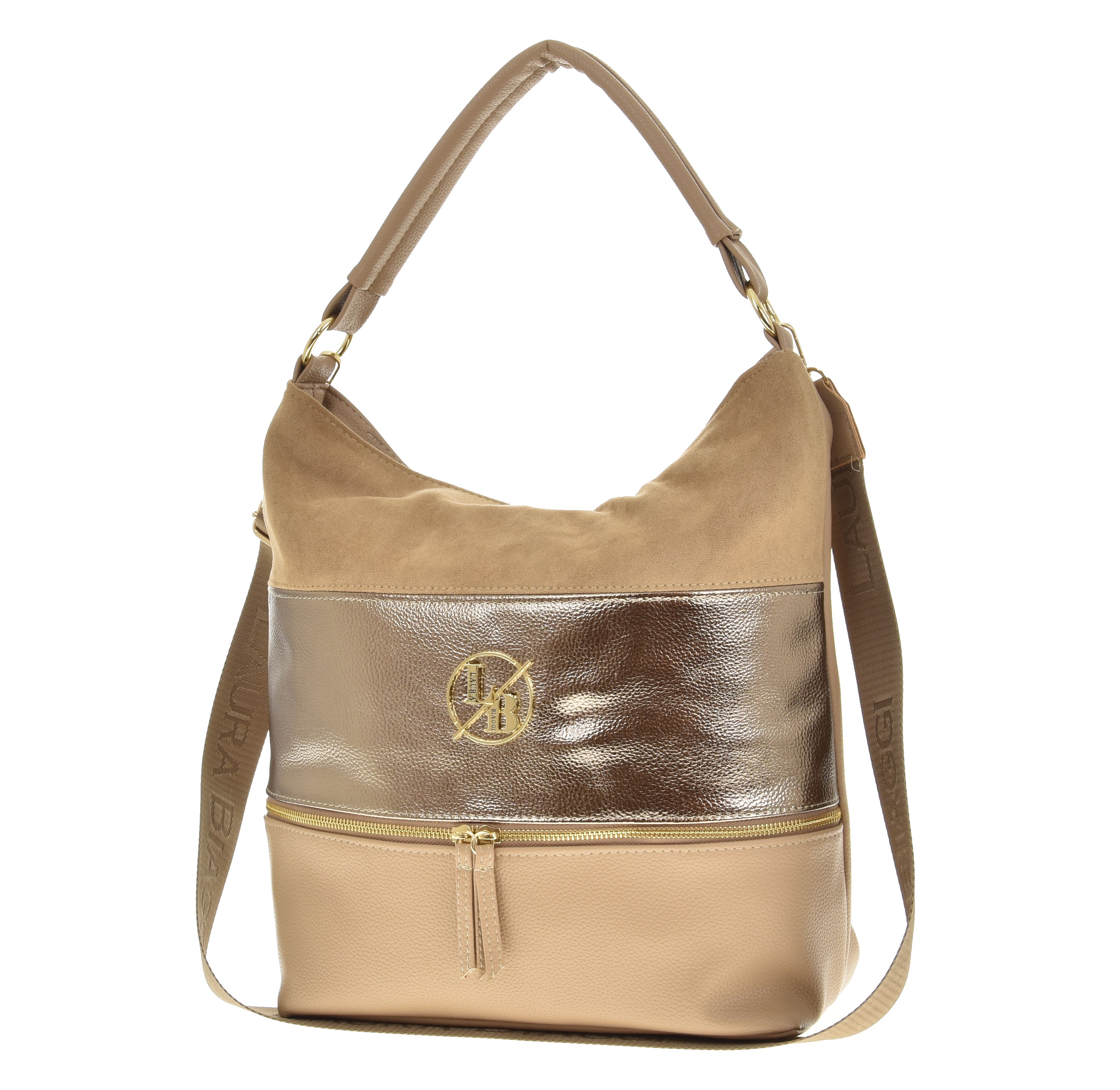 Rozměry: délka 39 cm, šířka 16 cm, výška 37 cm Barva: světle hnědá Materiál: 100% polyuretan, podšívka 100% PE