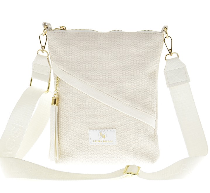 Kabelka má dlouhý, nastavitelný popruh přes rameno a lze ji tak nosit jako crossbody. Kabelka má na přední i zadní straně kapsy na zip. Kabelka má zapínání na zip. Uvnitř kabelky je černá podšívka, kapsa na zip a otevřená kapsička na mobil. Kovové komponenty mají zlatou barvu. Kabelka je velmi lehká.