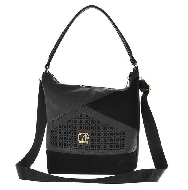 Kabelka má jedno ucho do ruky, ale vejde se i na rameno. Kabelka má ještě dlouhý, odnímatelný a nastavitelný popruh na rameno. Na zadní straně je kapsa na zip. Kabelka má zapínání na zip. Uvnitř je červená podšívka, dvě kapsy na zip a otevřená kapsa. Kovové komponenty mají světle zlatou barvu.