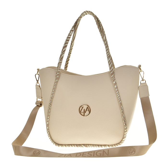 Hezká kabelka má dvě ucha do ruky nebo na rameno. Na zadní straně je kapsa na zip. Kabelka má zapínání na zip. Uvnitř kabelky je pevná podšívka. Prostor uvnitř kabelky je rozdělený přepážkou na dvě části. Přepážka má zapínání na zip a slouží jako kapsa. Uvnitř kabelky je dále kapsa na zip a dvě otevřené kapsy. Kabelka má pevný tvar. Kovové komponenty mají zlatou barvu.