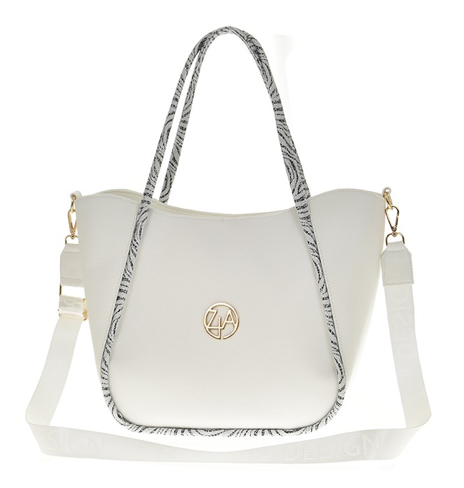 Hezká kabelka má dvě ucha do ruky nebo na rameno. Na zadní straně je kapsa na zip. Kabelka má zapínání na zip. Uvnitř kabelky je pevná podšívka. Prostor uvnitř kabelky je rozdělený přepážkou na dvě části. Přepážka má zapínání na zip a slouží jako kapsa. Uvnitř kabelky je dále kapsa na zip a dvě otevřené kapsy. Kabelka má pevný tvar. Kovové komponenty mají zlatou barvu.