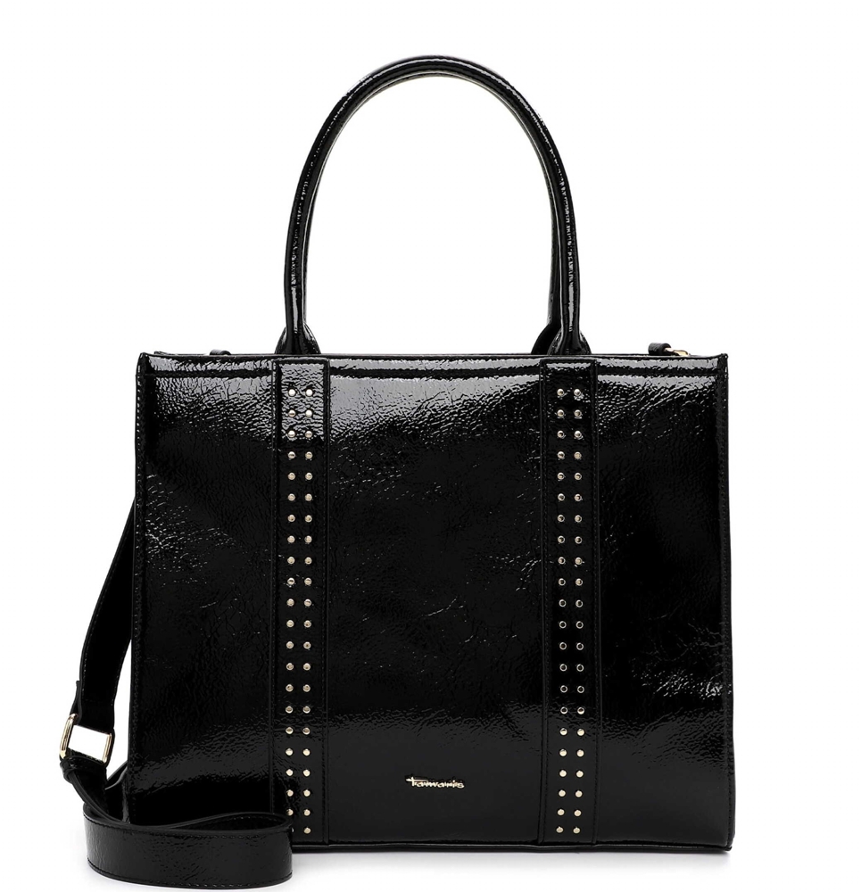 Kabelka má dvě ucha do ruky a dlouhý, odnímatelný a nastavitelný popruh přes rameno. Na zadní sraně je kapsa na zip. Kabelka má zapínání na zip. Uvnitř kabelky je pevná podšívka, kapsa na zip a otevřená kapsa. Kovové komponenty mají světle zlatou barvu. Kabelka má pevný tvar. Na přední straně je logo Tamaris.