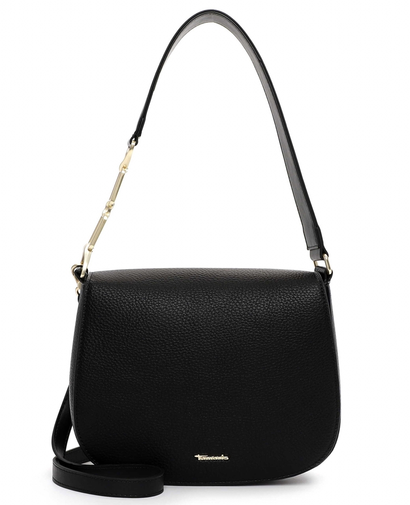 Kabelka má jedno ucho do ruky nebo na rameno a dlouhý, odnímatelný a nastavitelný popruh přes rameno. Kabelku tak lze nosit v ruce, na rameni nebo šikmo přes rameno jako crossbody. Na zadní straně je kapsa na zip. Kabelka má klopnu se zapínáním na magnet, pod klopnou je ještě zapínání na zip. Uvnitř kabelky je pevná podšívka, kapsa na zip a otevřená kapsa. Kovové komponenty mají zlatou barvu. Kabelka má pevný tvar. Na přední straně je logo Tamaris.