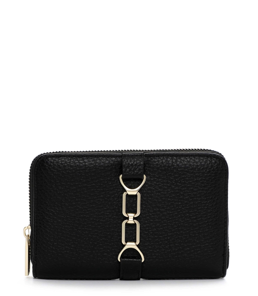 Středně velká peněženka má zip ze tří stran. Uvnitř jsou 4 přihrádky na bankovky, zipová kapsička na mince, 6 záložek na doklady a 6 záložek na karty. Kovové komponenty mají stříbrnou barvu. Na přední straně je logo Tamaris.