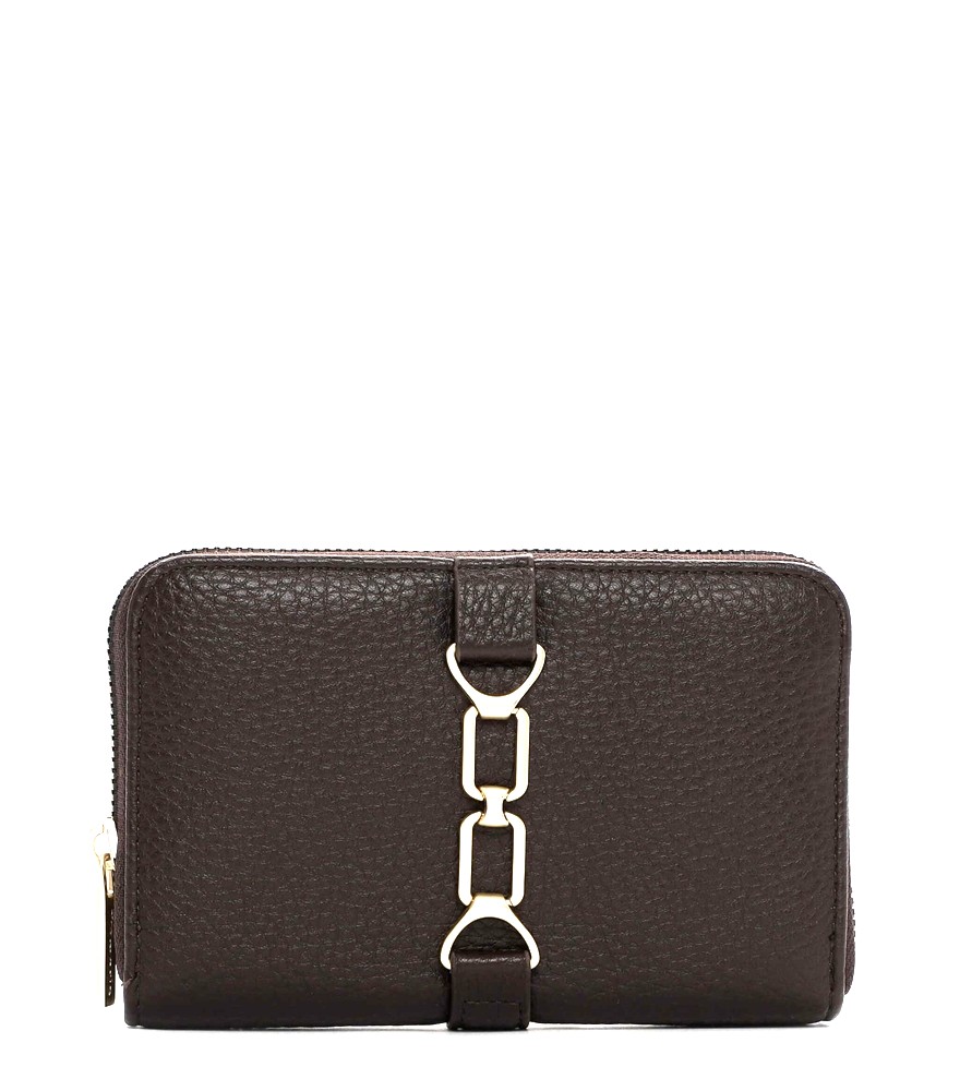 Středně velká peněženka má zip ze tří stran. Uvnitř jsou 4 přihrádky na bankovky, zipová kapsička na mince, 6 záložek na doklady a 6 záložek na karty. Kovové komponenty mají stříbrnou barvu. Na přední straně je logo Tamaris.